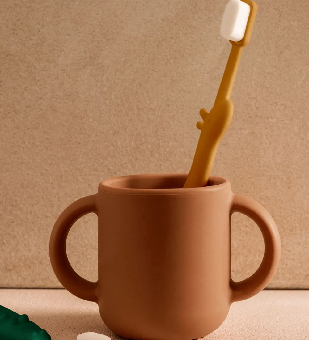 Praktiske Liewood tandbørster i grøn og gul, formet som en krokodille og en giraf. Liewood tandbørsterne har et sjovt design, der gør tandbørstningen til en hyggelig oplevelse for de mindste.