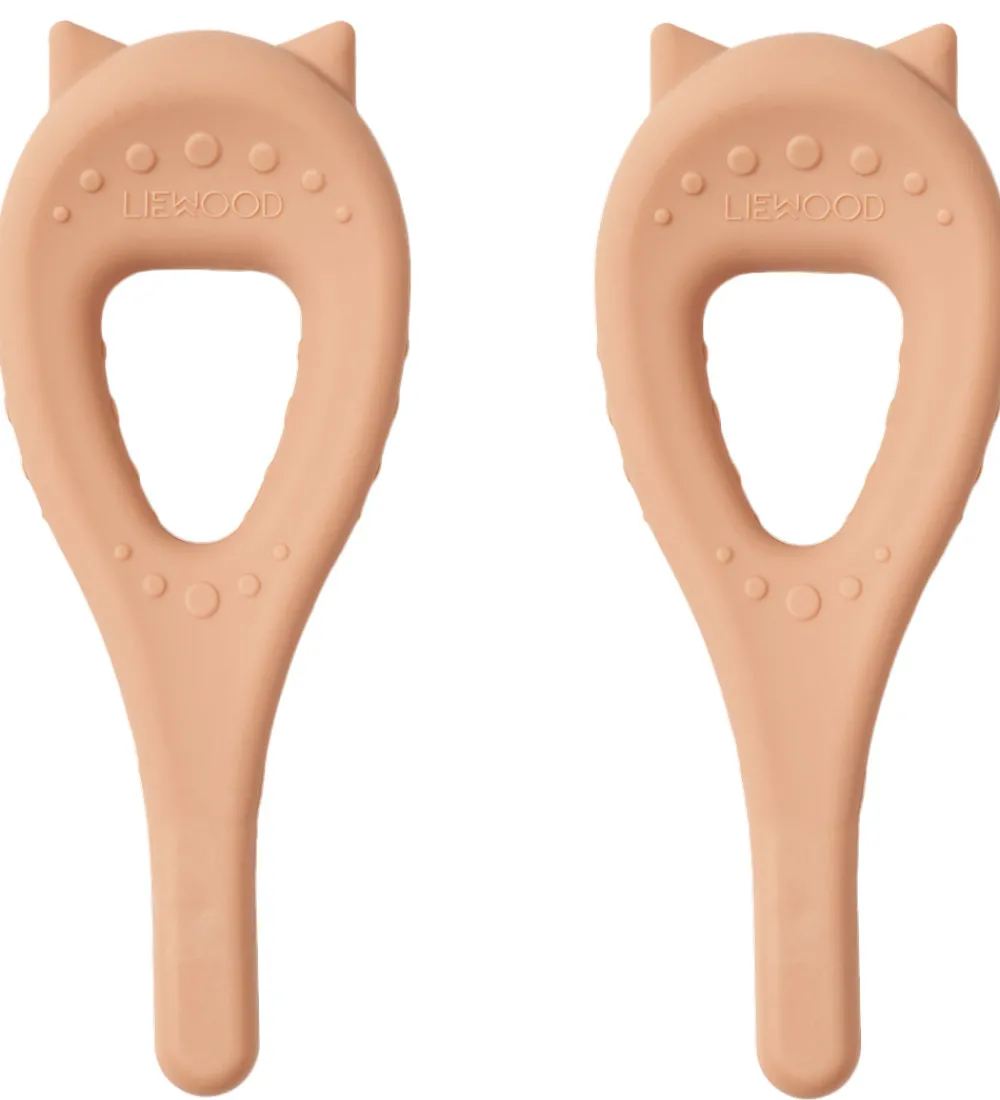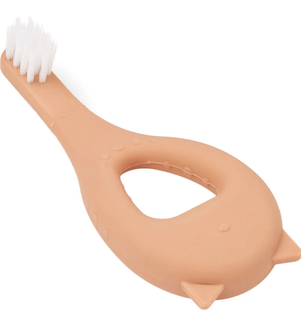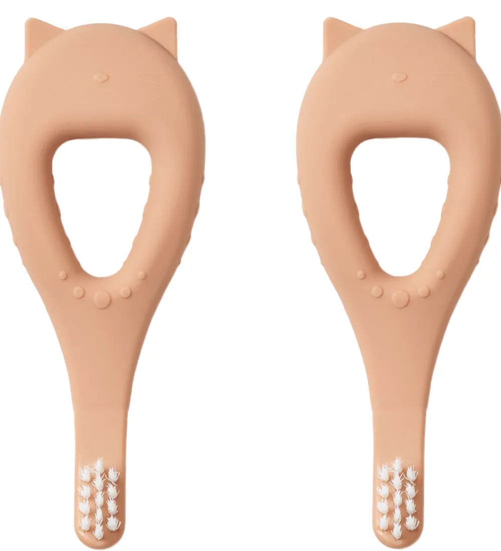 Fine Liewood tandbørster i rosa silikone med et kattedesign solgt som en 2-pak.