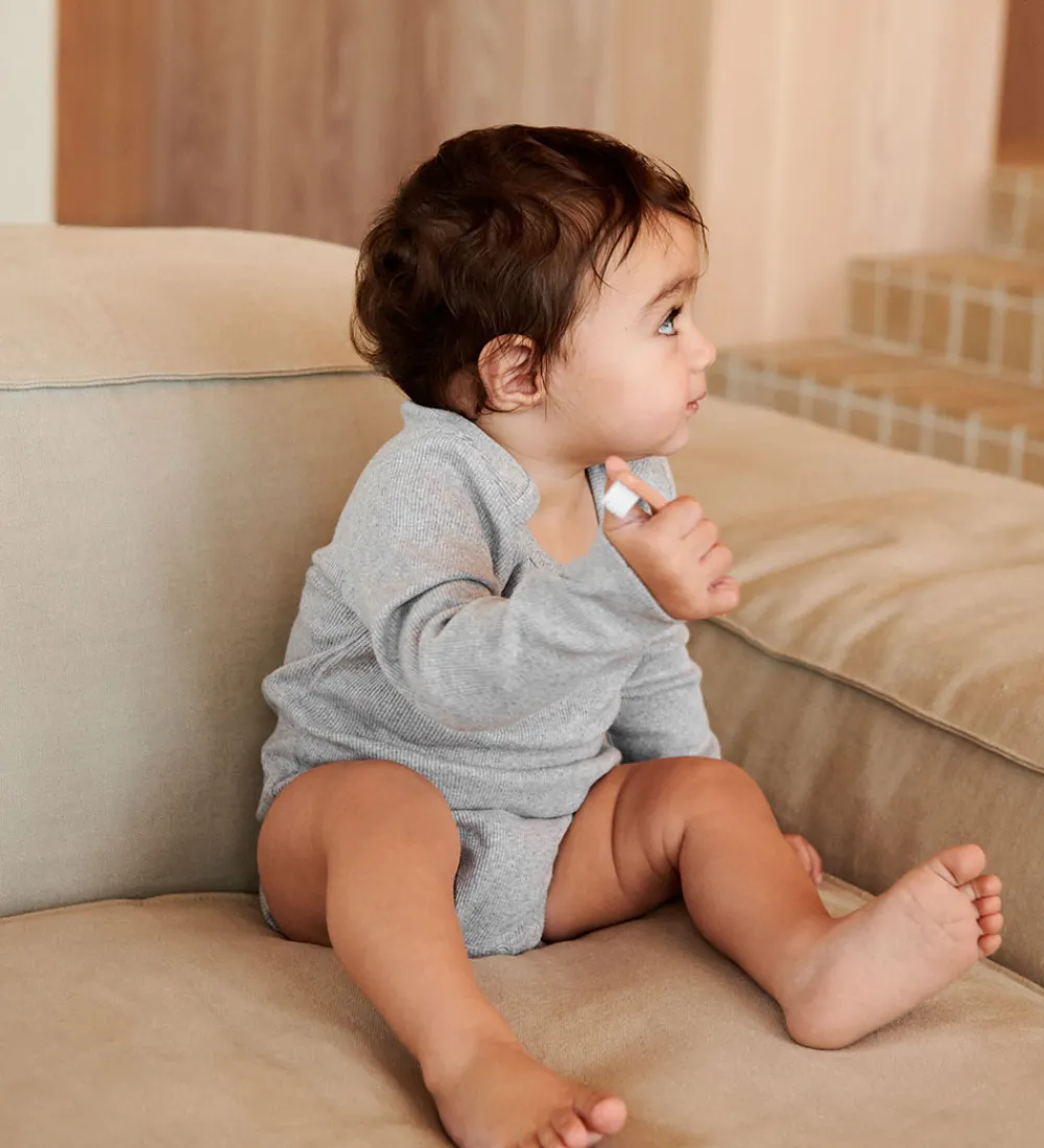 Liewood tandbørsterne har stimulerende strukturer og et rundt håndtag med hul i midten, som er nemt at holde ved, når de små selv vil prøve at børste.
