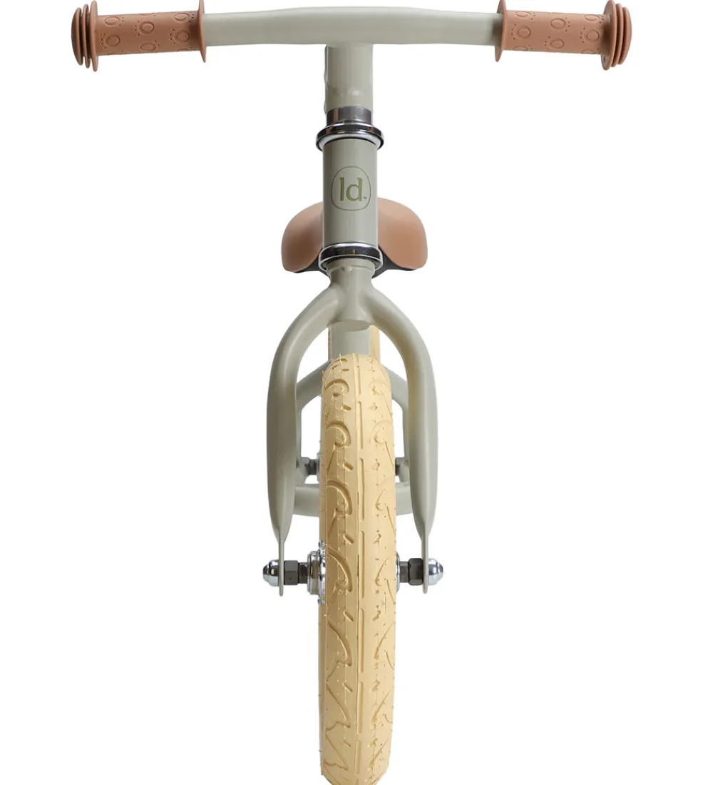 Fin Little Dutch løbecykel med et flot vintage design i en støvet grøn nuance med brune detaljer.