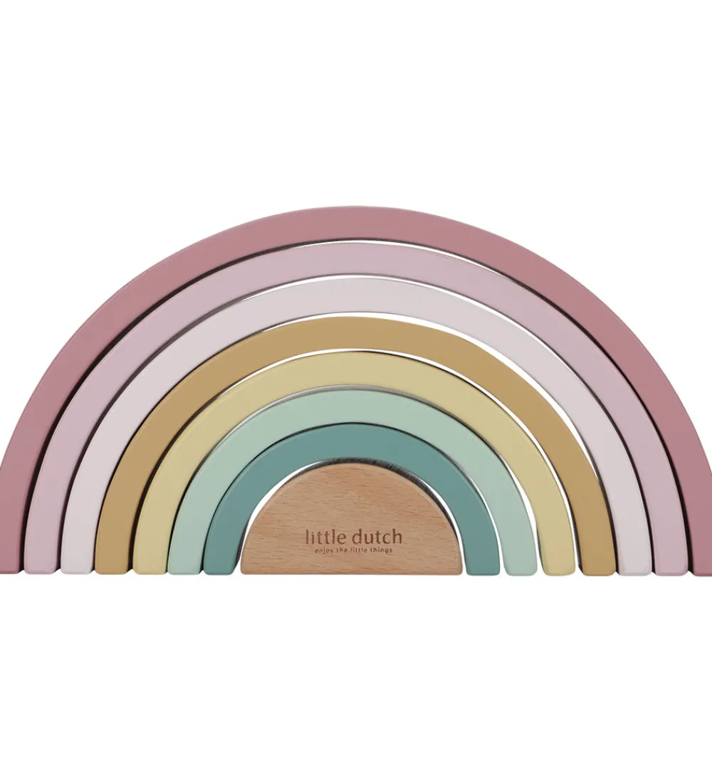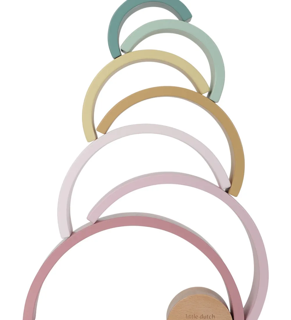Charmerende Little Dutch legetøj i form af otte farverige buer, som tilsammen danner en regnbue.