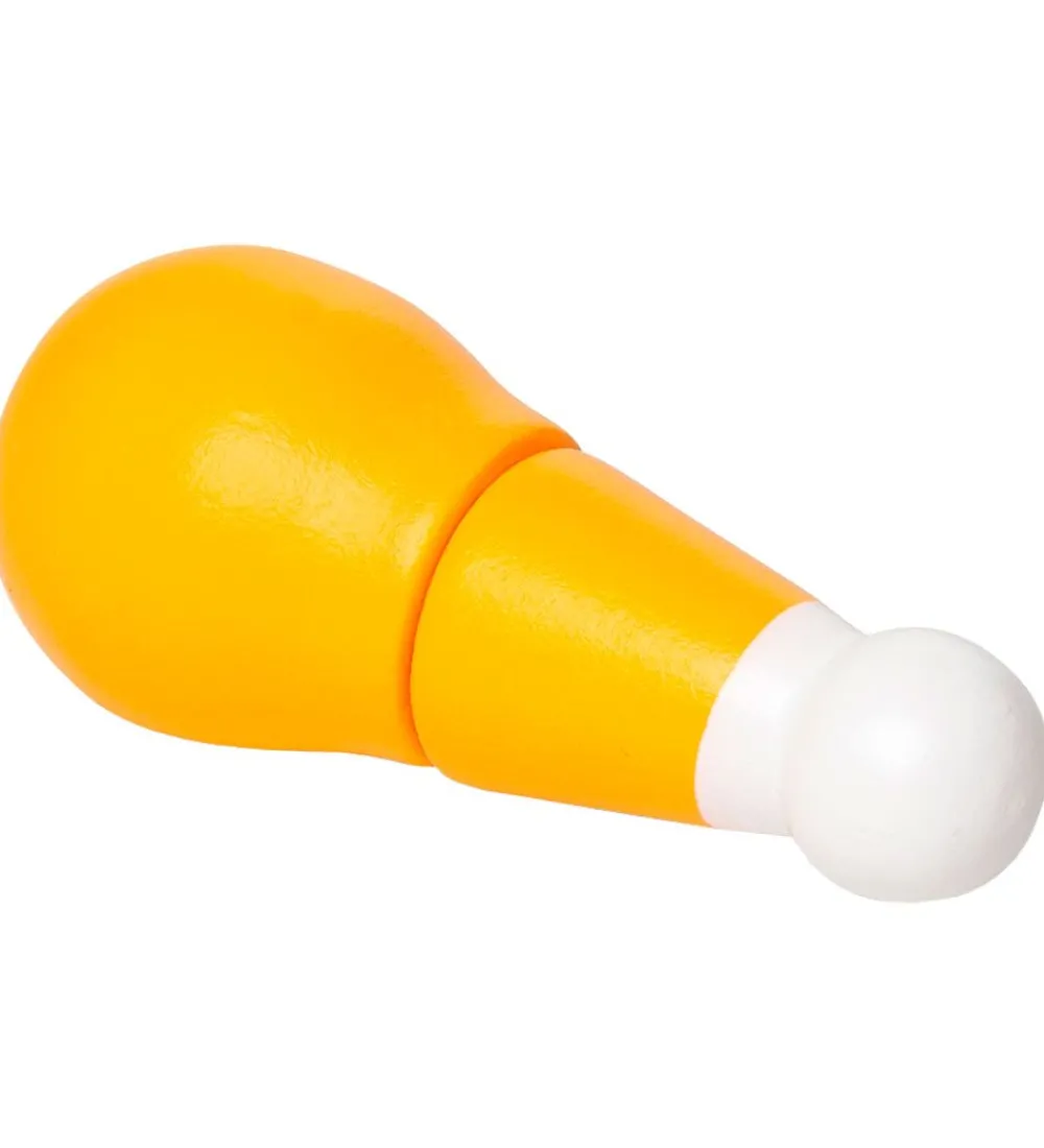 Underholdende MaMaMeMo legemad, bestående af et kyllingelår i gul og hvid.