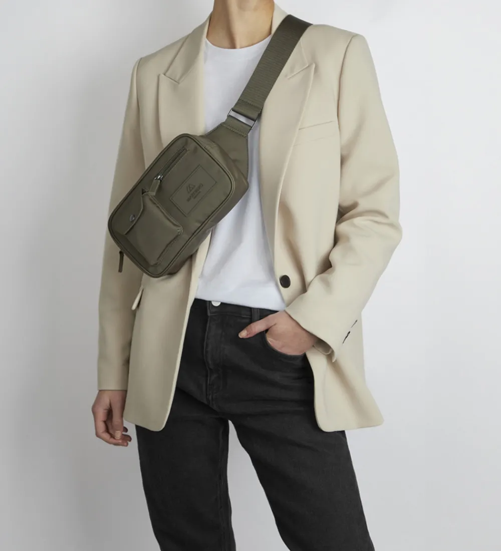 Flot Markberg bæltetaske i olivengrøn med et logo fortil.