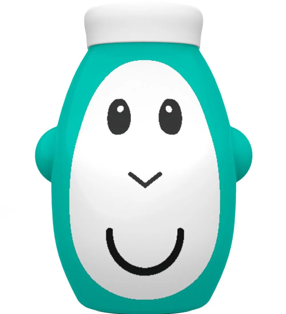 Praktisk Matchstick Monkey hår renser i turkis grøn med et print af et abeansigt fortil i hvid og sort. I hver side er der små, runde ører.