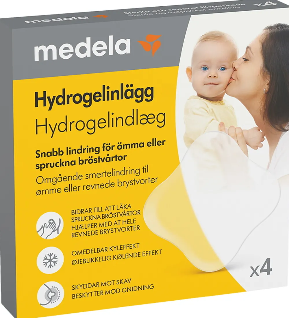 Medela Hydrogelindlæggene hjælper med at fremme hudens helingsproces ved revnede og ømme brystvorter, samt bidrager de til en sund hudbarerriere. De har en blød og beskyttende pude, som giver en kølende lindring og beskytter mod gnidning.