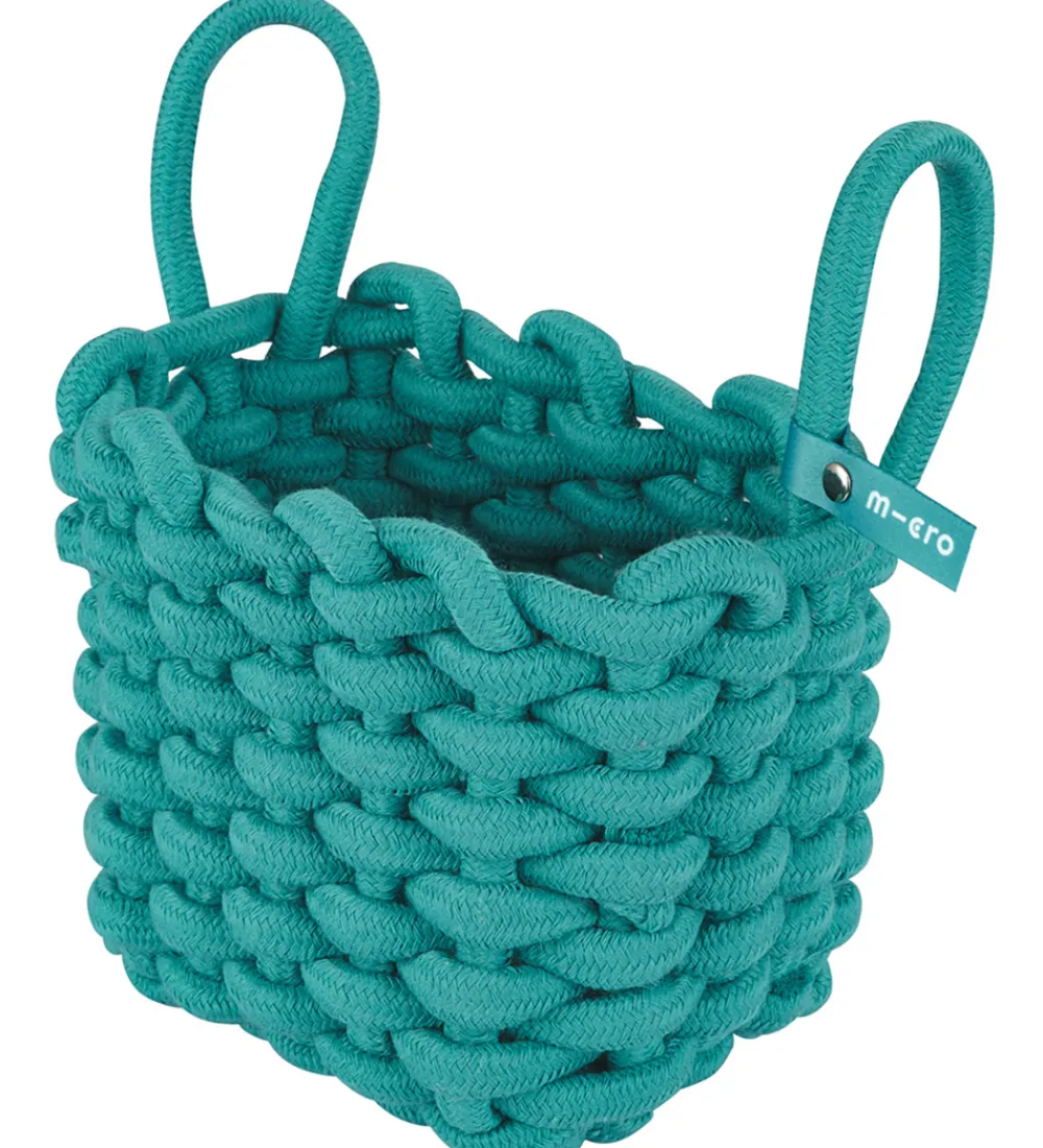 Fin Micro kurv til løbehjul i en blågrøn nuance med et flettet design.