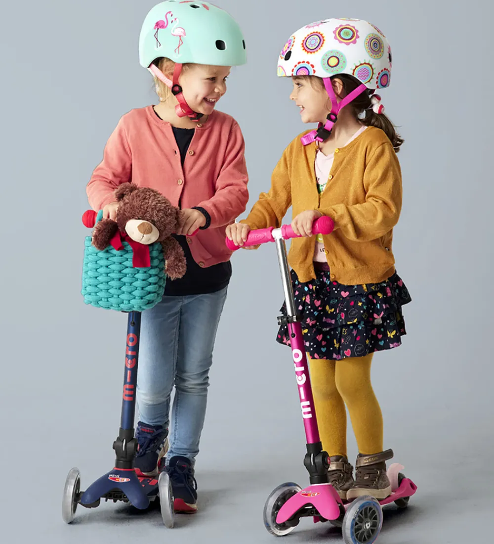 Micro kurven har en firkantet facon med to stropper i siderne, som kan sættes omkring styret på løbehjulet. Perfekt til opbevaring af småting til turen.