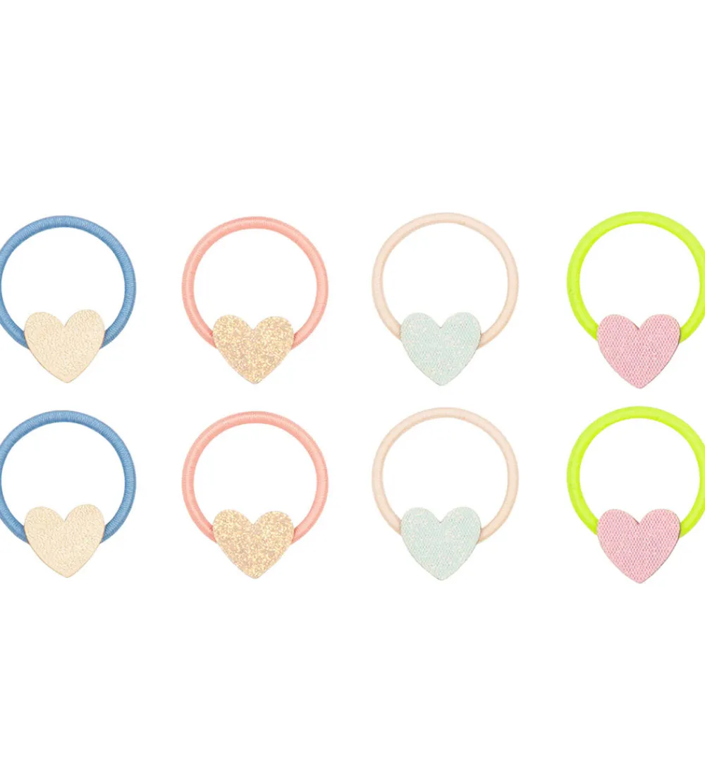 - 2 elastikker i lys rosa med glimmerhjerte i mint