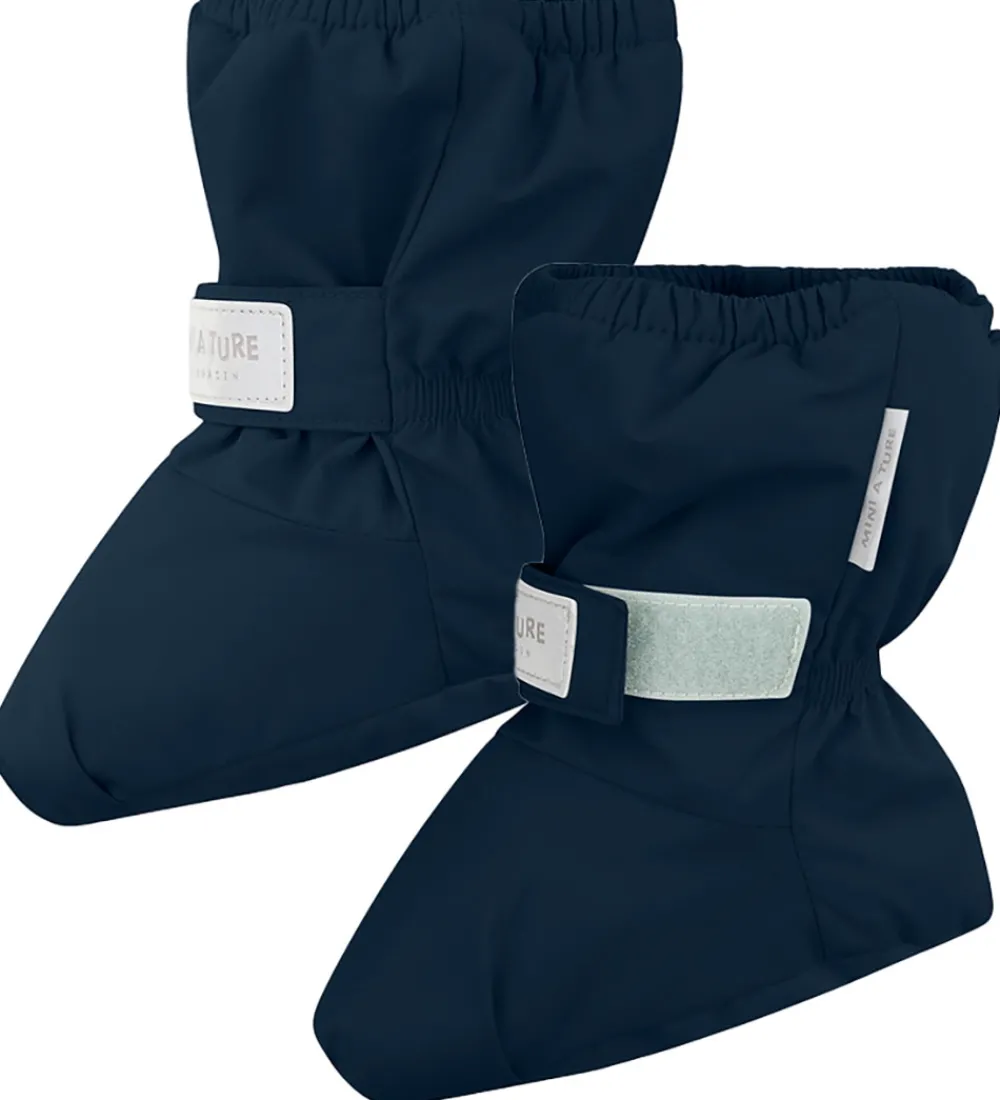 Mini A Ture overtræksskoene har smalle elastikkanter i åbningen samt på bagsiden af anklen. Overstræksskoene kan strammes ind omkring anklen med en velcrostrop.