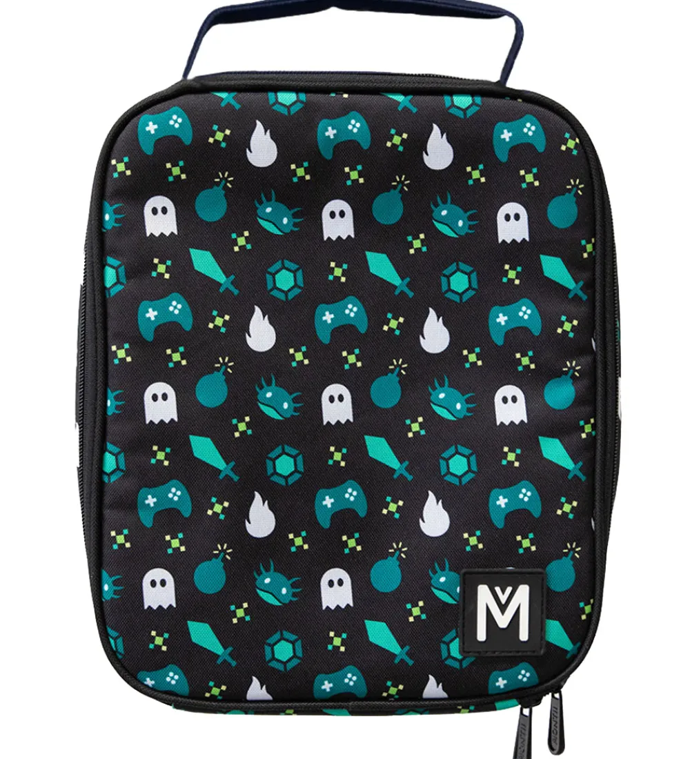 Lækker MontiiCo køletaske i sort med et gamerprint i flotte farver.