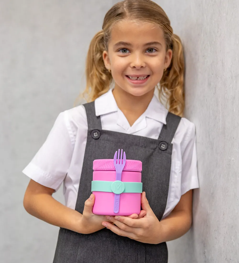 MontiiCo bestikbåndet er i blødt, fleksibelt silikone og spændes nemt omkring MontiiCo termobeholdere og Bento Two snackbokse for at fastgøre bestik fra MontiiCo Out and About-serien og MontiiCo spork-sæt.