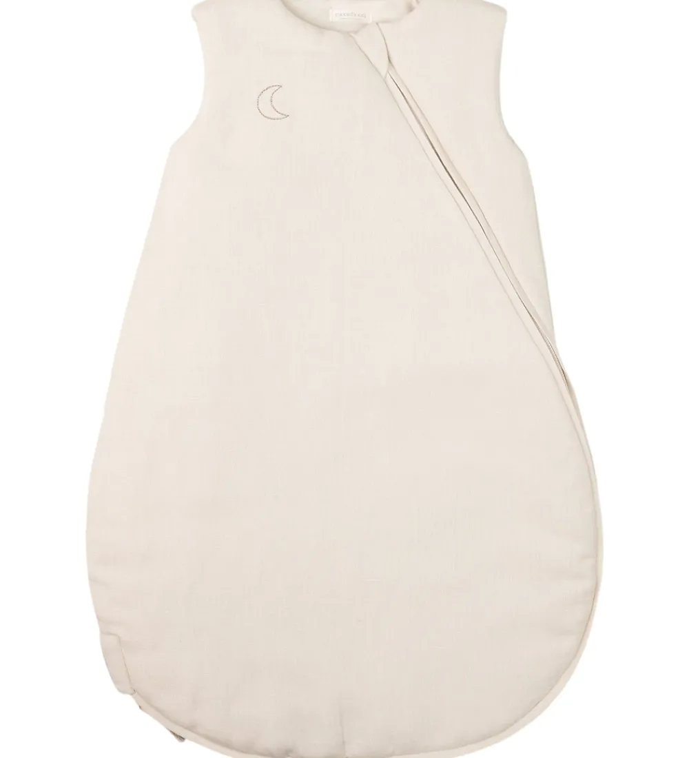 Moonboon soveposen har en bred bund for plads til naturlig bevægelse, og den åbnes med støjsvag lynlås, som også giver mulighed for nemt bleskift. Kvaliteten er en lækker blanding af hør og økologisk bomuld.
