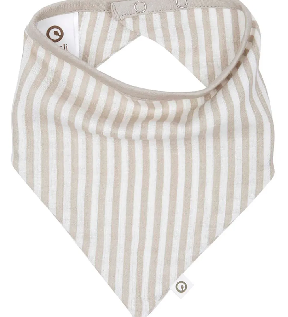 Skøn Müsli savlesmæk med musselin-struktur i beige og hvid med striber.