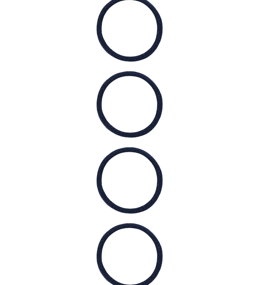 Smarte Name It hårelastikker i navyblå med glimmer. Hårelastikkerne sælges i en 4-pak, og er lavet i et design som er skånsomt for håret.