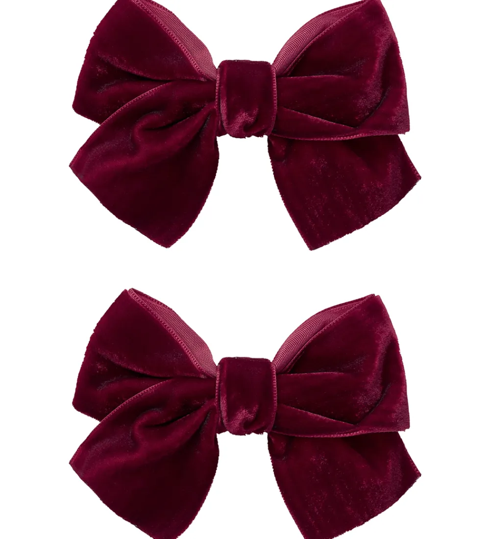 Fine Name It hårspænder solgt i en 2-pak med store sløjfer i bordeauxrød velour. Name It hårspænderne giver et elegant touch til enhver frisure.