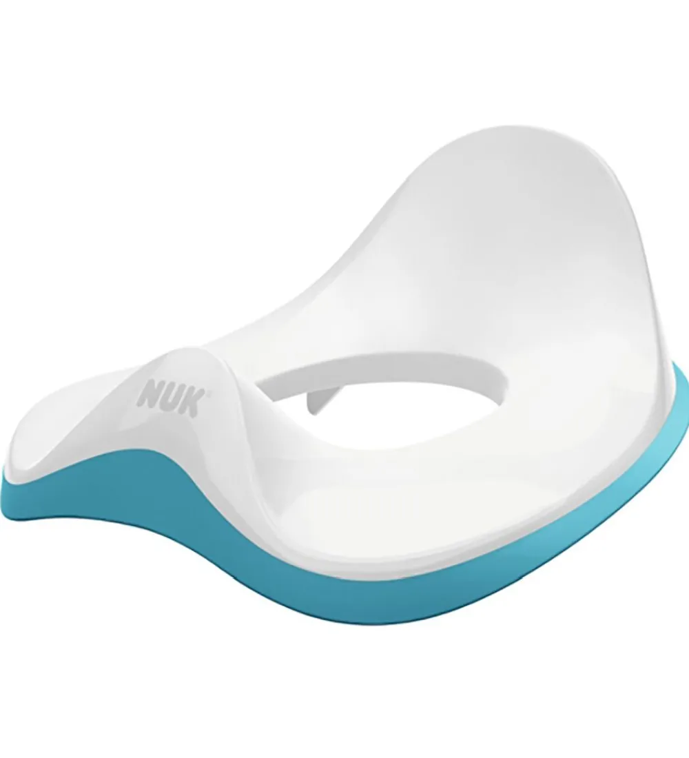Nuk toilettræneren er til når dit barn skal lære at gå fra potte til toilet. Toilettræneren er ergonomisk formet og har en høj rygstøtte. Bagpå er der et greb, så man også kan hænge den op, for at spare plads. Silikoneringen skal sørge for at toilettræneren ikke glider, når den placeres på toilettet. Denne toilettræner skal kunne passe på alle standard toiletter.