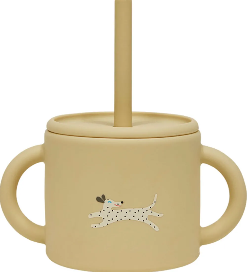 Smart OYOY kop i gul med et sødt hundemotiv, der tilføjer et legende præg til måltiderne.