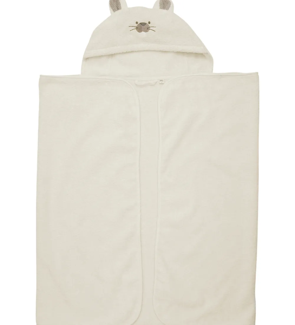 Sødt Pippi babyhåndklæde i en hvid bomuldsfrotté. Babyhåndklædet har en hætte med to ører og et broderet ansigt.