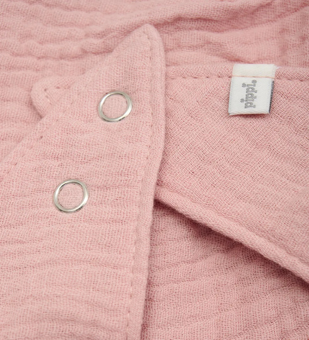 Skønne Pippi Baby savlesmække solgt som en 2-pak i lys rosa og med en musselinstruktur.
