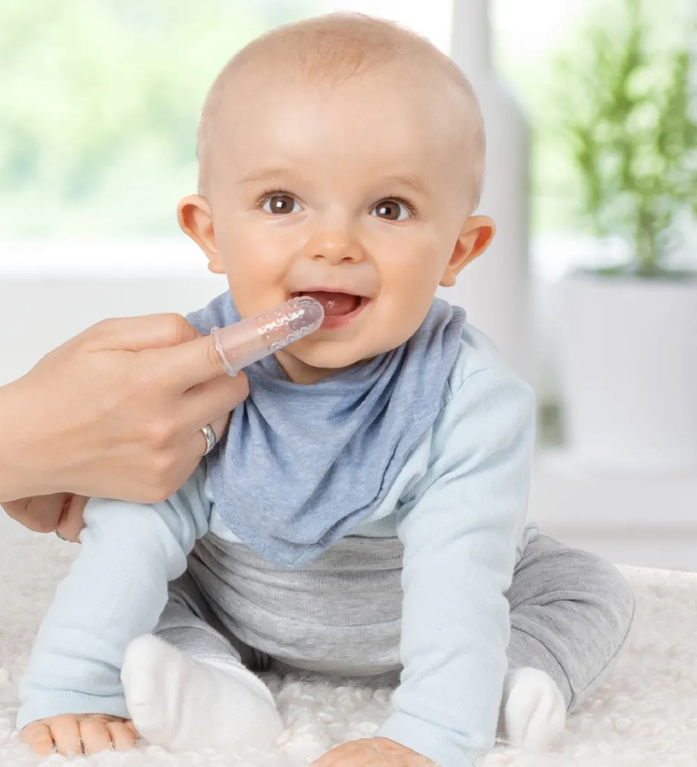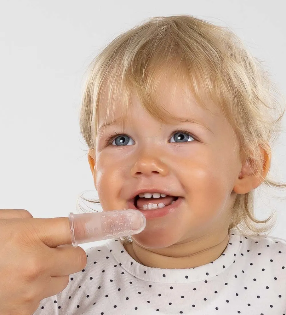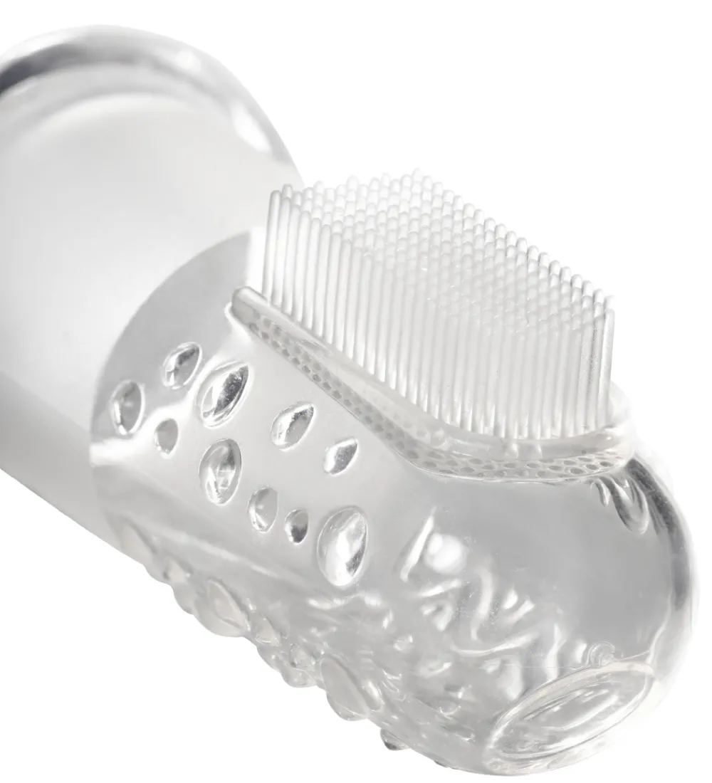 Reer fingertandbørsten har fire overflade strukturer og en blød børste, som massere og blidt rengøre barnets gummer og tænder. Tandbørsten har små fordybninger til tandpastaen. Ved hjælp af disse fingertandbørster kan barnet få en god rutine til mundhygiejne allerede fra en tidelig alder.