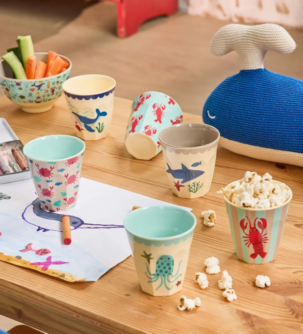 Søde Rice kopper solgt i en 6-pak med sjove, havdyr designs.