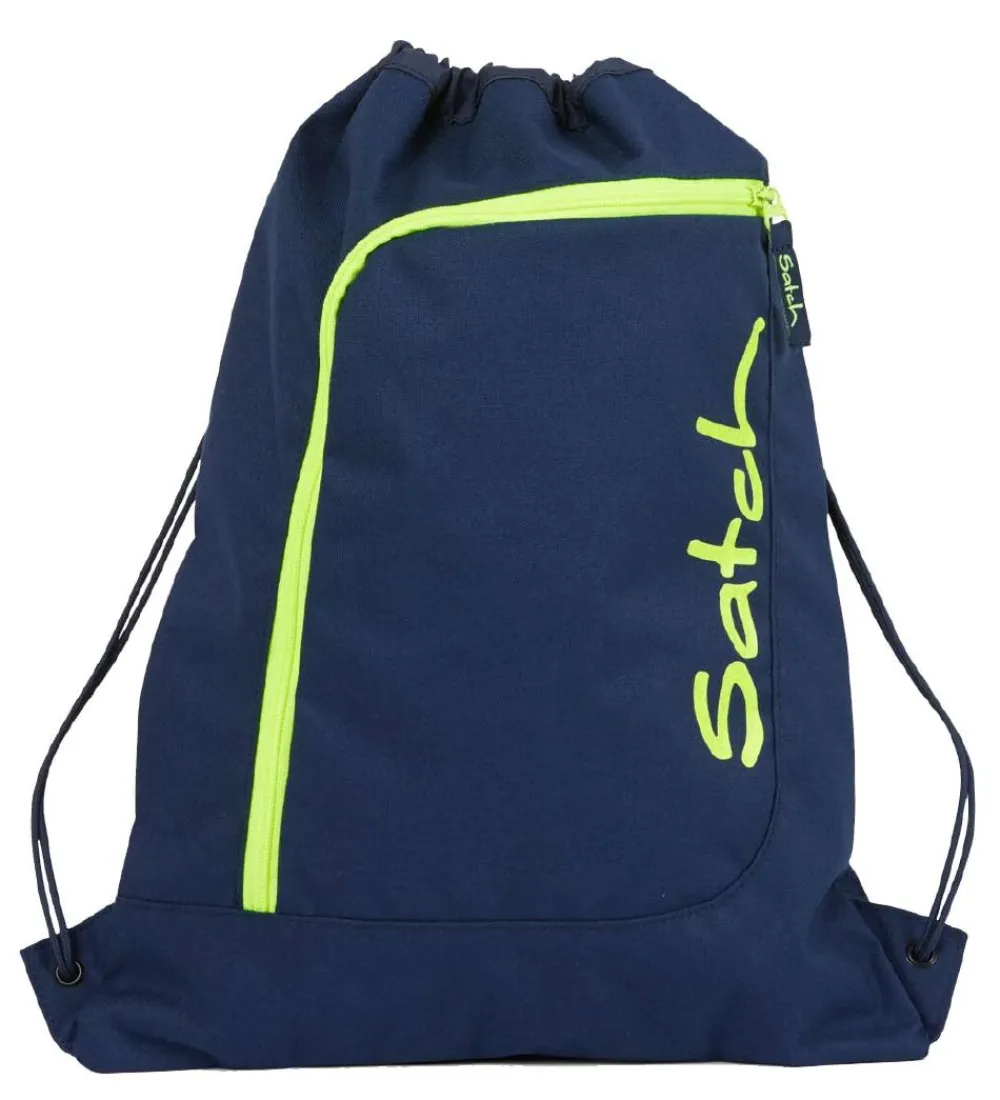 Satch gymnastikposen lukkes til i toppen ved at stramme snørerne ind. Fortil er der et mindre rum, som lukkes med en lynlås. Gymnastiposen kan klikkes fast uden på skoletaskerne fra Satch med remmen med klikspændet i toppen af tasken.