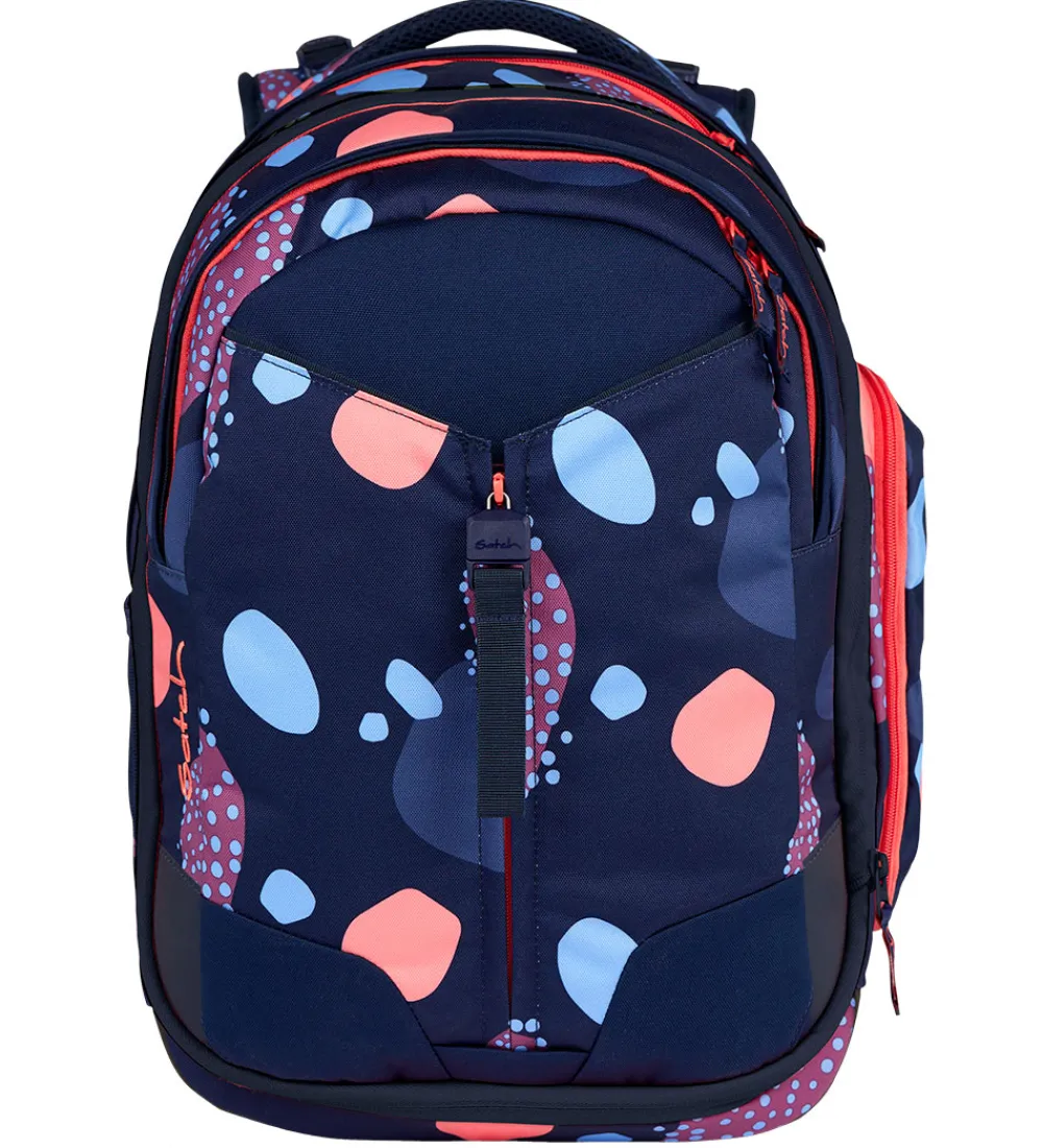 Satch skoletasken har en helt fast bund og ryg, der giver en ergonomisk støtte. Ryggen kan desuden justeres efter barnets højde (140-180 cm), så tasken passer helt perfekt, samtidig med at skoletasken vokser med barnet og kan bruges i mange år. Der er vatterede skulderstropper, som kan justeres i længden, og de kan også justeres i forhold til, hvor højt oppe på taskens ryg de skal sidde. Derudover er der et justerbart brystspænde samt et hoftebælte, som kan tages af, hvis man ønsker det.