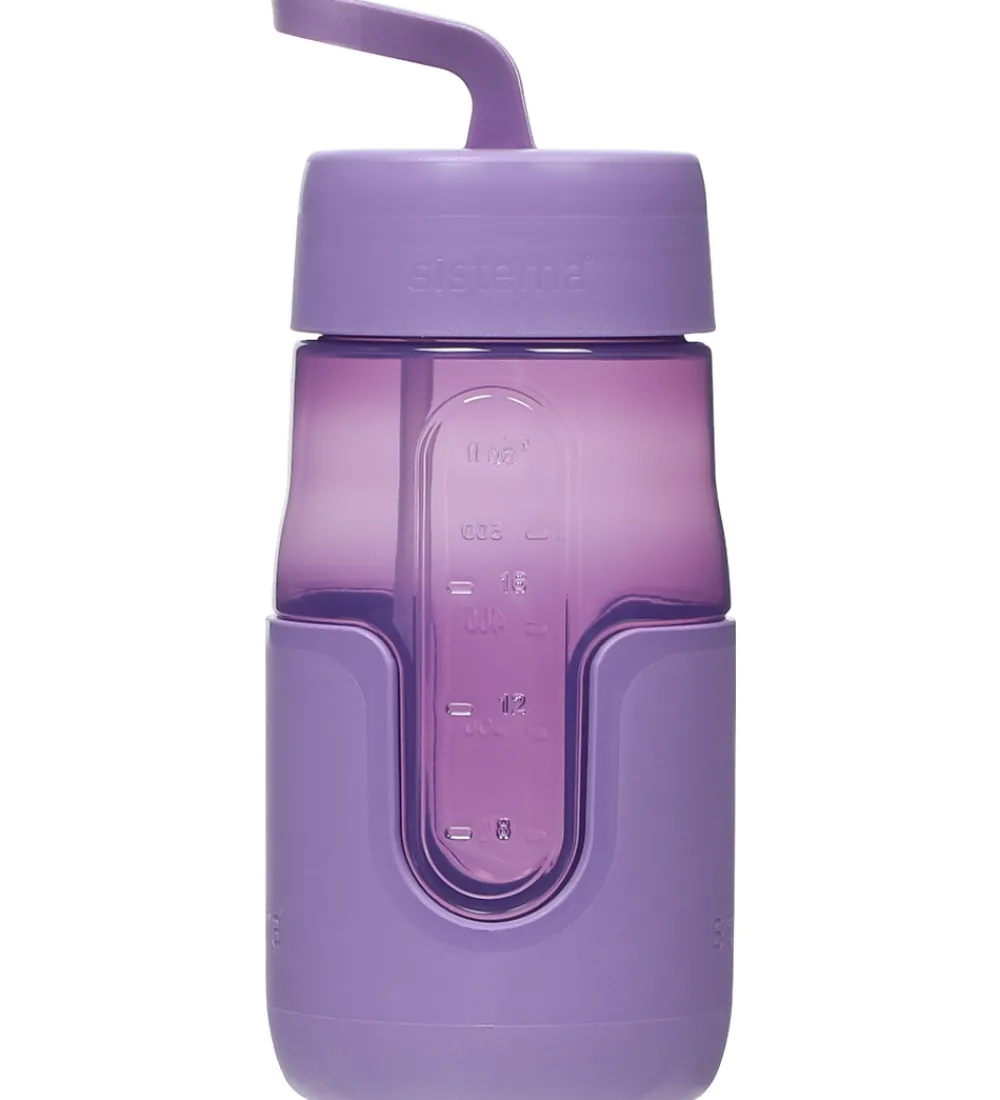 Fin Sistema drikkedunk i gennemsigtig, hård plast i lilla. Drikkedunken kan indeholde op til 700 ml.