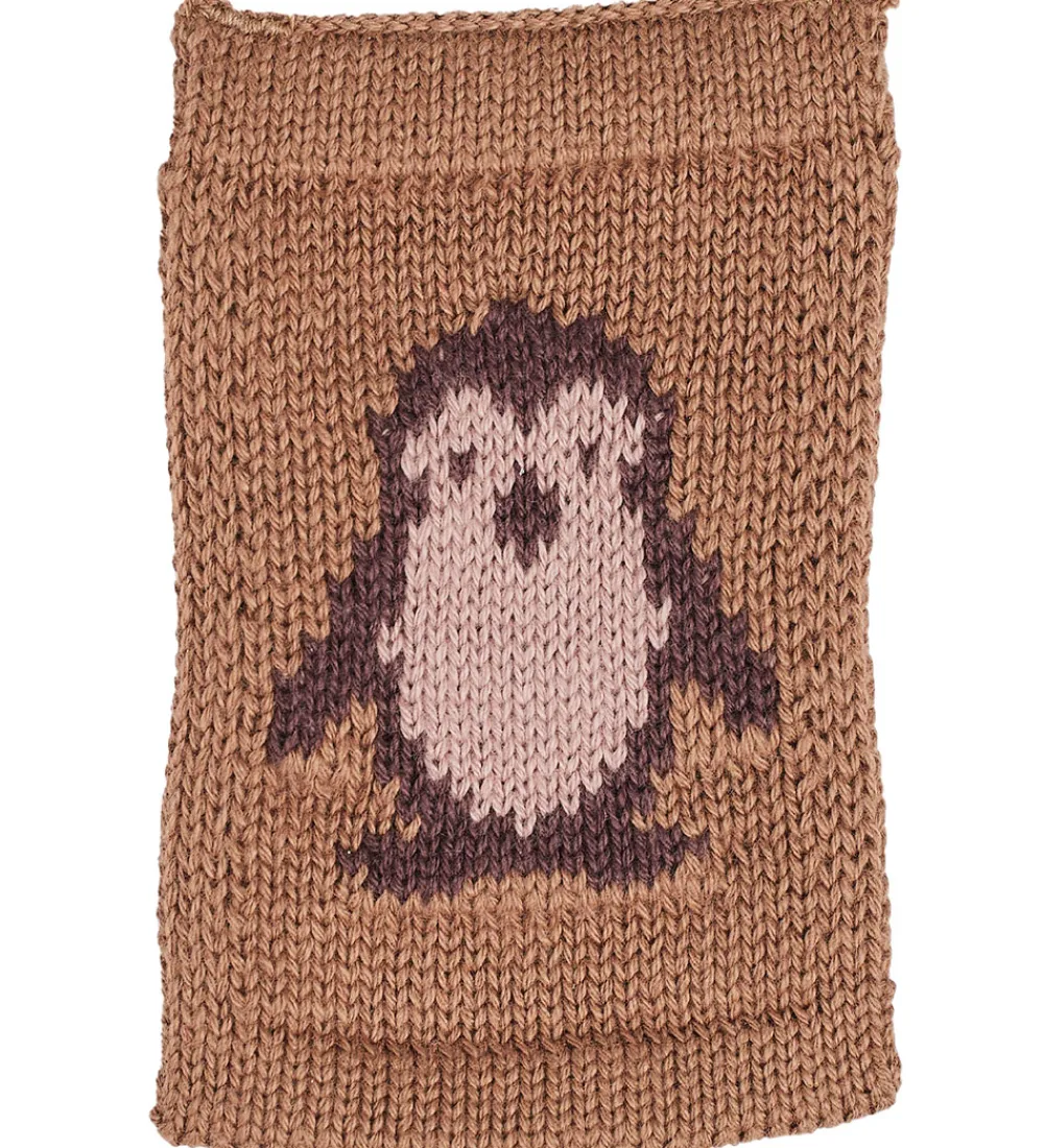 Flot Smallstuff flag i brun med en strikket struktur og et dekorativt pingvinmotiv i lilla og rosa. Med Smallstuff flaget kan du hænge den sammen med barnets navn og danne en fin og hyggelig flagranke.
