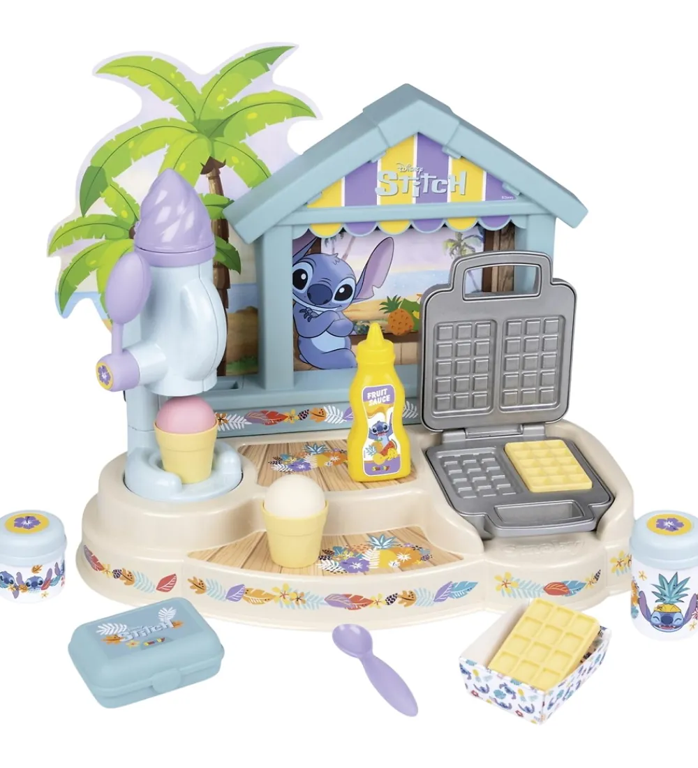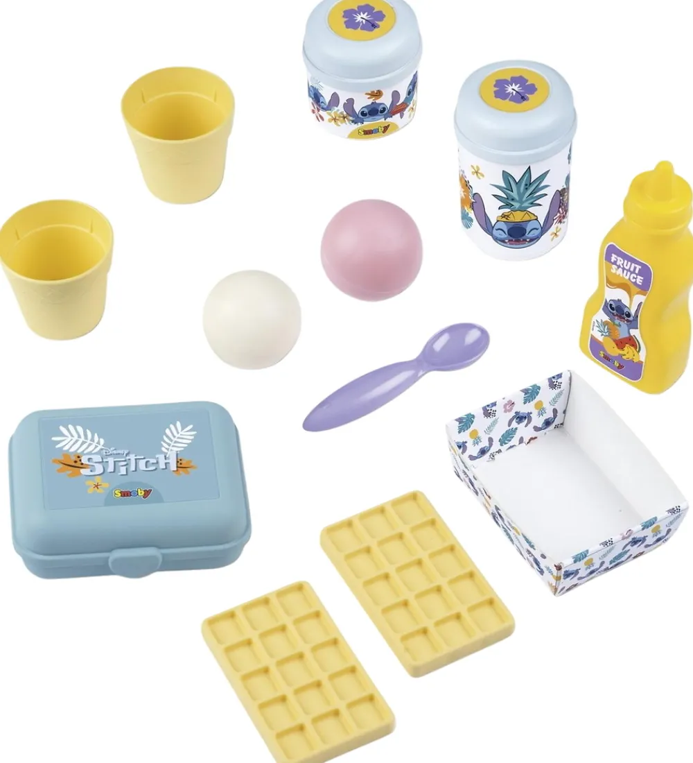 Sjovt Smoby legekøkken med Disney Stitch tema. Legekøkkenet består af en strandbar med 12 dele, hvor man kan lave vafler og is. Smoby legekøkkenet er underholdene for små kokke, som elsker Stitch-universet.