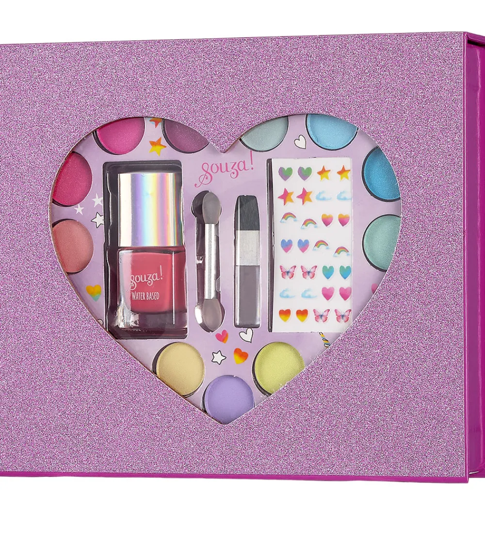 Fint Souza sminkesæt, som kommer i en pink gaveæske med hjerterude. Sminkesættet indeholder: