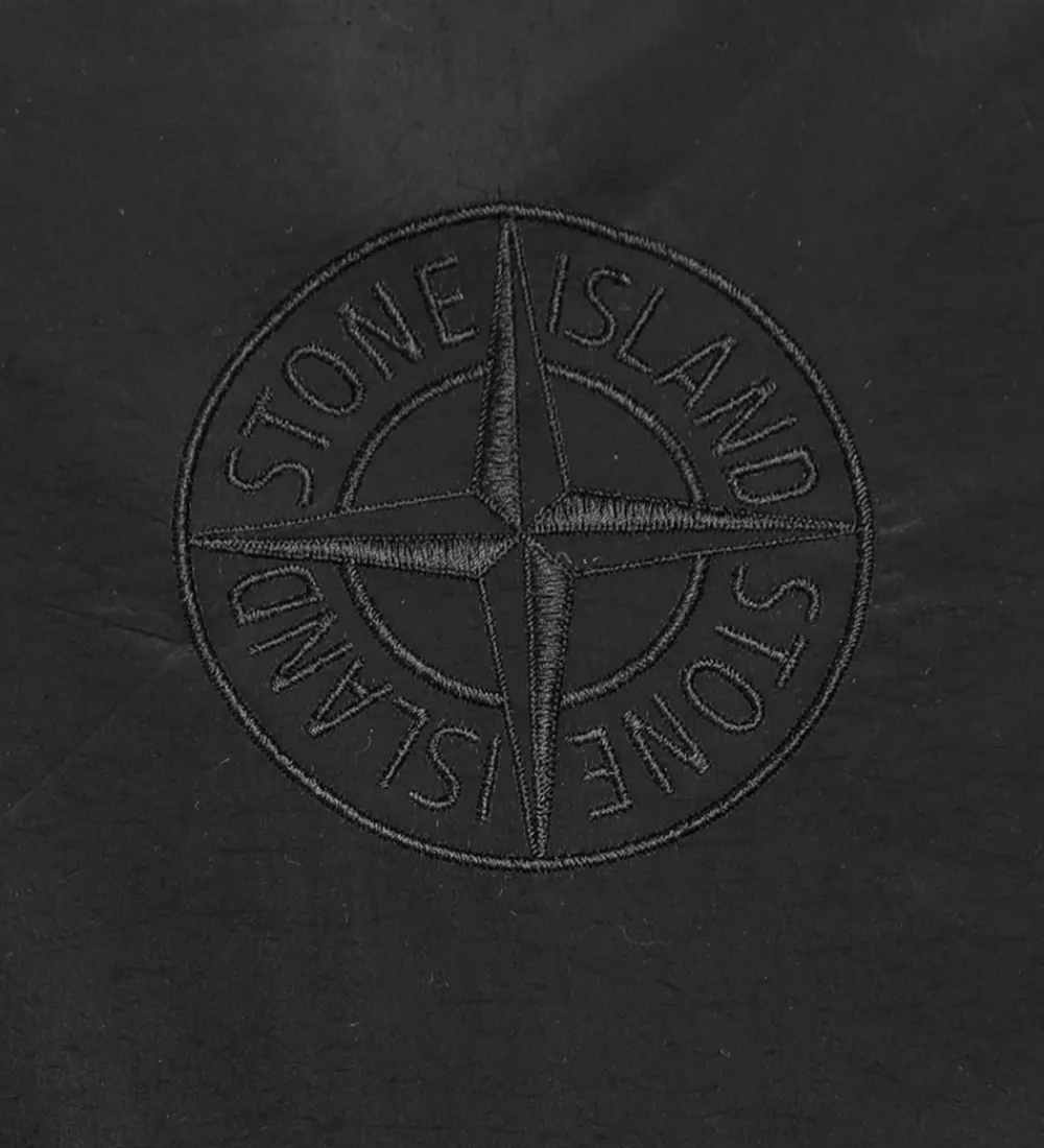 Smart Stone Island rygsæk i ensfarvet sort i en glatvævet kvalitet, og på fronten sidder der et sort mærke med et logo.