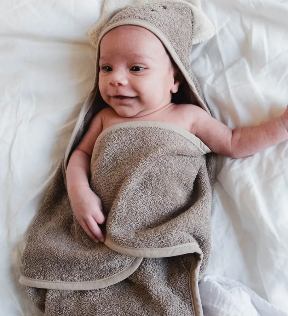 Thats Mine babyhåndklædet har arme, en lomme i bunden og en fast hætte, så babyhåndklædet nemt kan svøbes om barnet. Babyhåndklædet er fremstillet i dejligt, økologisk bomuldsfrotté, som føles behageligt mod huden.