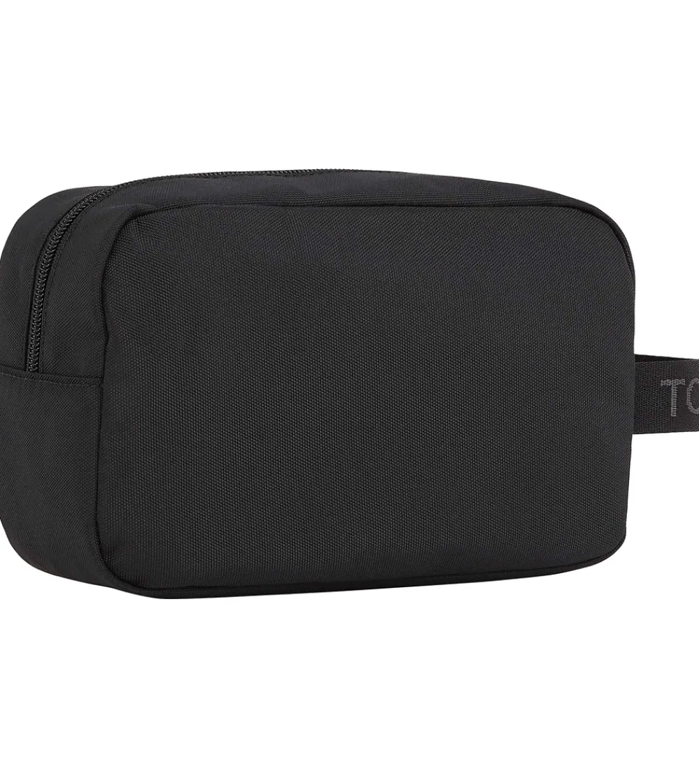 Tommy Hilfiger toilettasken består af ét stort rum, som åbnes med en lynlås i toppen. Invendigt er der to, åbne stiklommer. På fronten er en aflang, åben lomme til diverse småting. Toilettasken har en rem i den ene side, så den er nemmere at have med rundt.