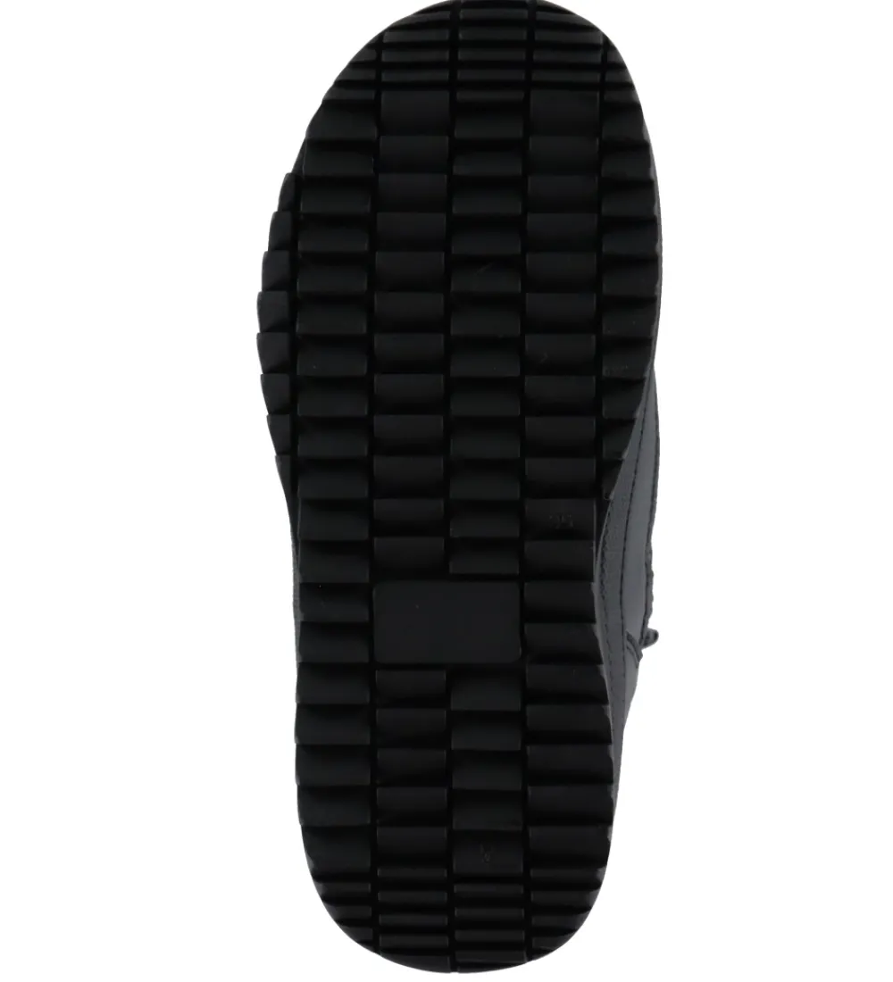 Tommy Hilfiger vinterstøvlerne har et højt skaft med vandrette syninger og en praktisk strop bagpå. De lukkes på indersiden med en lynlås og strammes foran med snørebånd. Vinterstøvlerne har fast hæl- og tåkappe, og indvendigt er der sort fleecefor, imiteret uld og udtagelige indersåler. Ydersålerne er letvægtige og har et groft skridmønster under bunden, som sikrer et stabilt fodfæste.