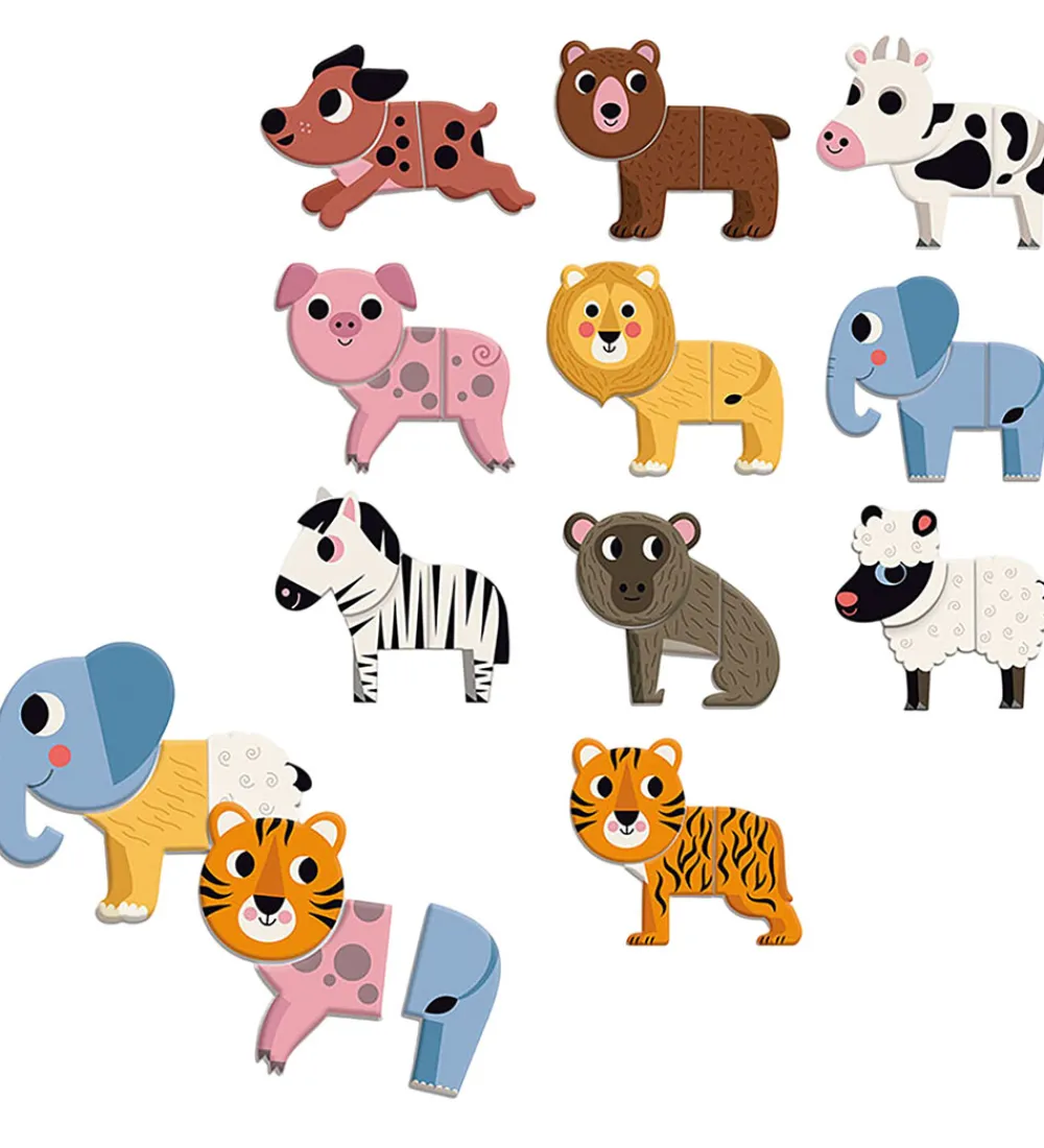 Fantastisk Vilac magnetlegetøj med sjove dyremotiver. Æsken indeholder 30 træbrikker, som kan kombineres til forskellige figurer. Vilac er kendt for deres kreative legehøjder.