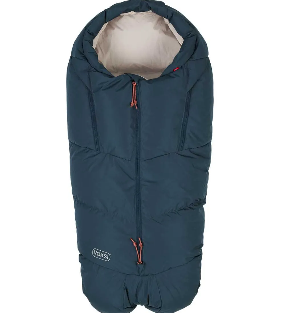 Voksiposen er i en lækker, glatvævet kvalitet, og den er vatteret med lune dun og fjer. Der medfølger en kompressionspose så køreposen kan gøres mindre, noget som er ideelt ved rejser. Kompressionsposen kan også bruges som opbevaringspose.