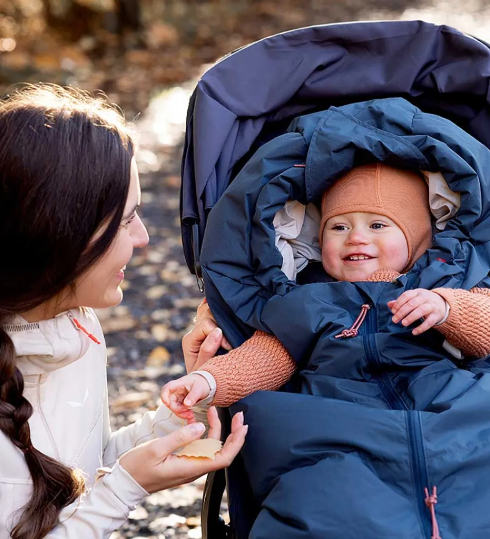 Smart Voksi kørepose i modellen Adventure i mørkeblå, med et beige for.