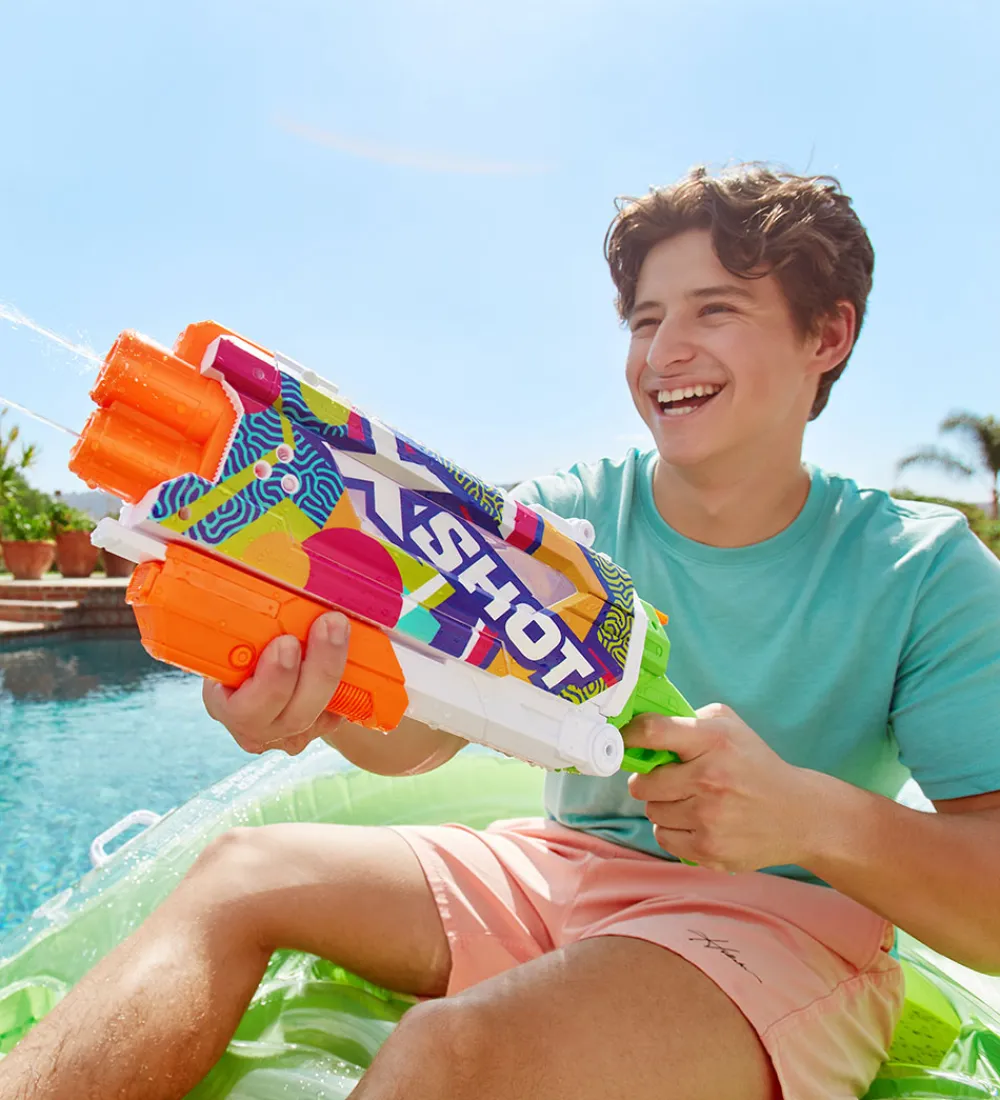 X-SHOT vandpistolen er perfekt til hæsblæsende og afkølende vandkamp, da den har Fast Fill-funktion, så den kan blive fyldt med vand på 1 sekund. Vandpistolen sprøjter vand op til 10 meter.